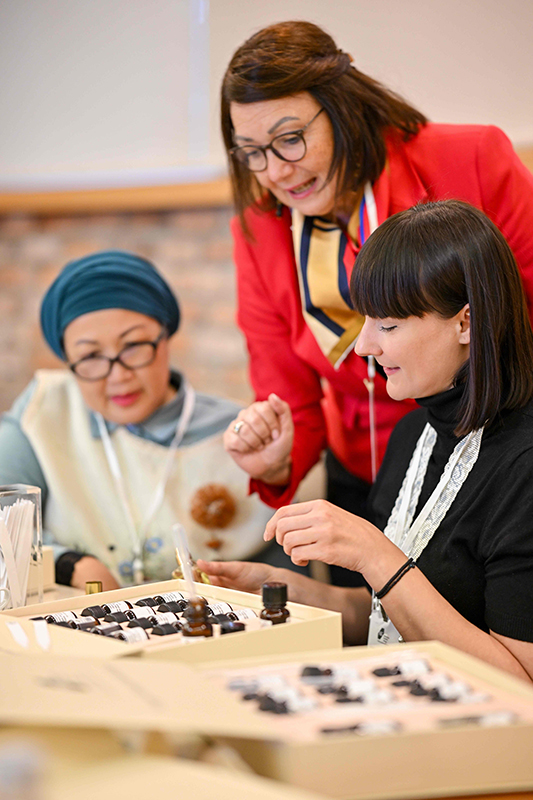 Esans notalarını inceleyen katılımcılar, kendilerine özgü kokularını oluşturdu. Kokunun hayatımızdaki yeri, koku hafızası ve parfümler hakkında bilgi sahibi olan katılımcılar, workshop’a büyük ilgi gösterdi. Keyifli bir zaman geçiren diplomatlar, öğle yemeğinde ağırlandı ve ardından tesislerden uğurlandı.