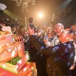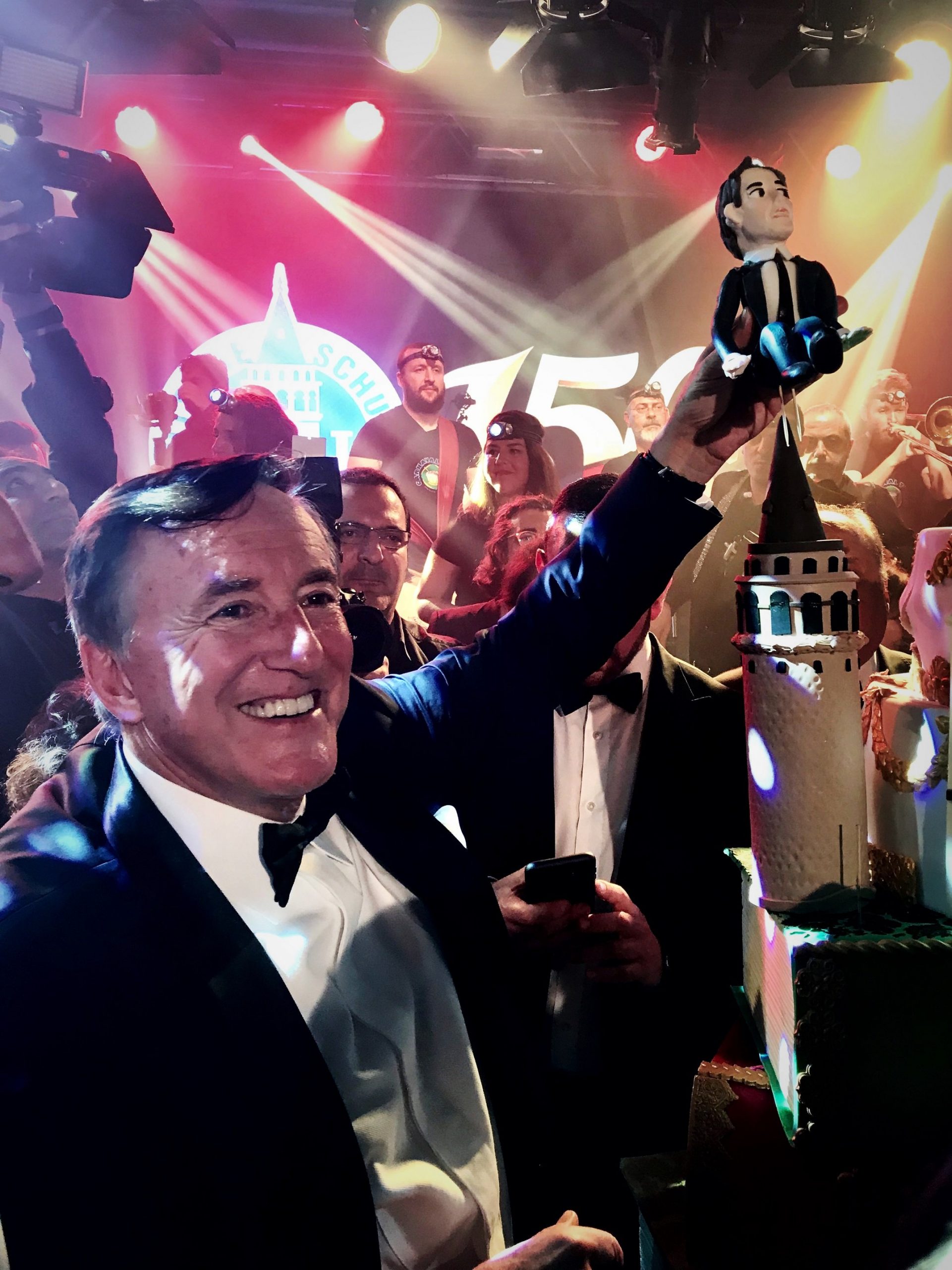 Alman TV’sinin tanınmış sunucularından Nazan Eckes’in sunuculuğu üstlendiği gecenin sonunda, üzerinde Bülent Eczacıbaşı ile birllikte okulun tanınmış mezunlarından Nazlı İmre ve Cüneyd Zapsu’nun şekerden yapılmış figürleri bulunan ve okul binası şeklinde yapılmış dev 150. yıl pastası kesildi.